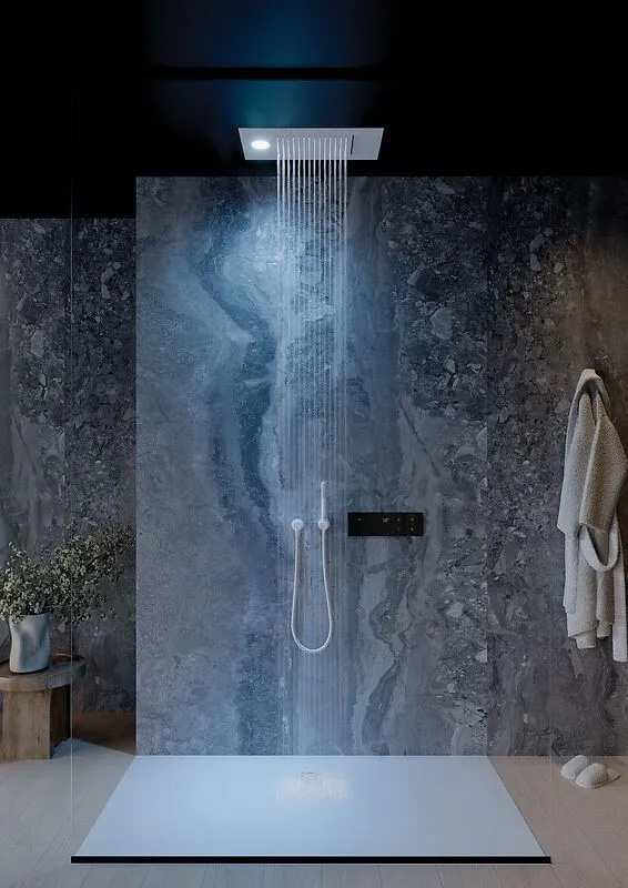 Für noch mehr individuellen Duschspaß sorgt die Möglichkeit, bis zu drei verschiedene Duschszenarien einzuprogrammieren und per Touch abzurufen. Ebenso steht eine smarte Aufwärmfunktion zur Verfügung: Sie wärmt das Wasser für alle Verbraucher auf die jeweilige Wunschtemperatur vor.